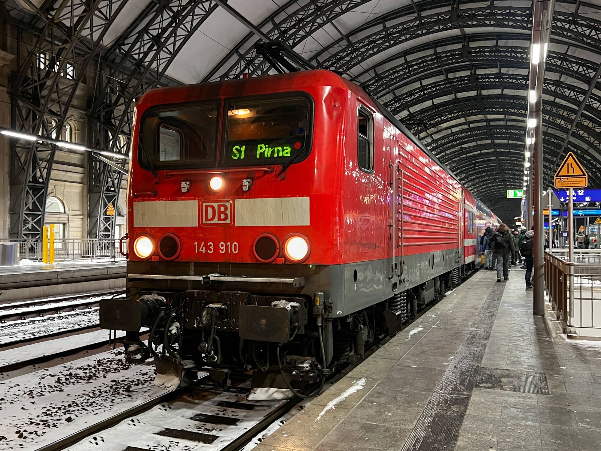 Bild 2: Lok 143 910 am 12. Januar 2026 in Dresden Hauptbahnhof mit der S1 nach Pirna