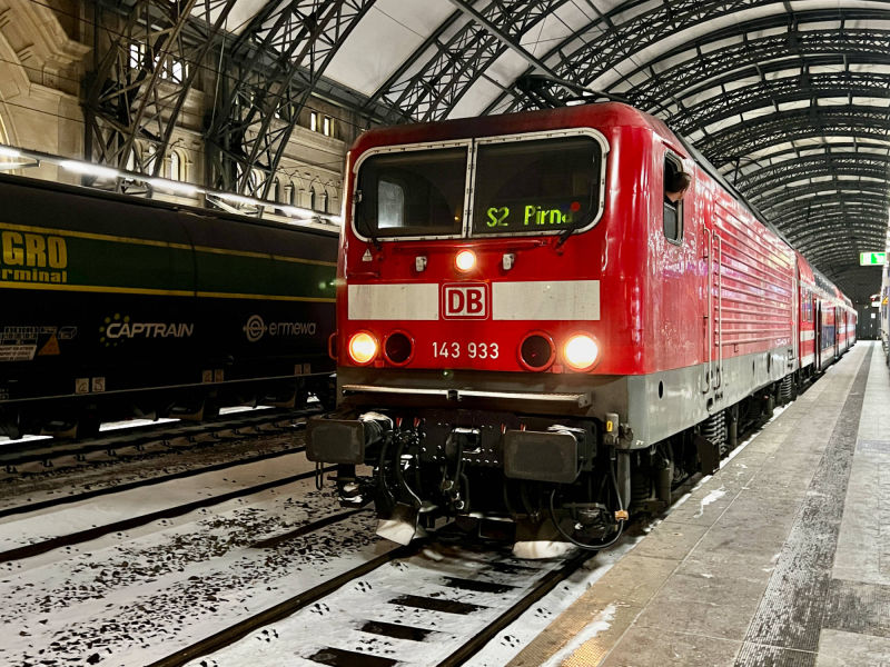 Bild 3: Lok 143 933 am 12. Januar 2026 in Dresden Hauptbahnhof mit der S2 nach Pirna